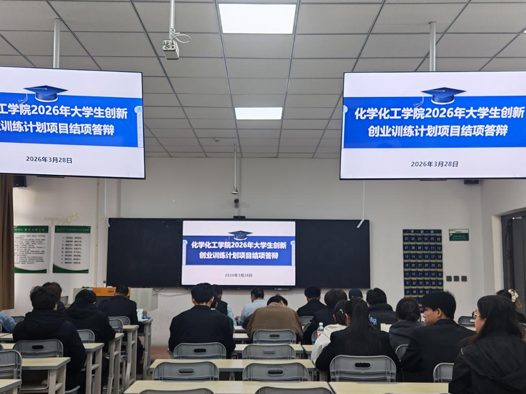 于2026年3月28日举行了“大学生创新创业训练计划项目”结题验收答辩会。评审专家及项目团队成员参加了本次验收会议。本次验收工作共有35个项目参与答辩,内容聚焦新能源材料研发、绿色化工工艺优化、智能检测技术创新、环境治理与修复、精细化工产品开发等多个化学化工领域前沿方向。